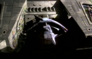 An external view of Tosk ship docked at DS9